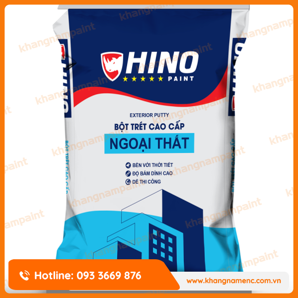 Bột trét tường ngoại thất cao cấp HINO là loại bột vữa lót mịn, được đặc chế để sử dụng làm phẳng, mịn bề mặt trước khi sơn, giúp hoàn thiện phẳng đẹp.