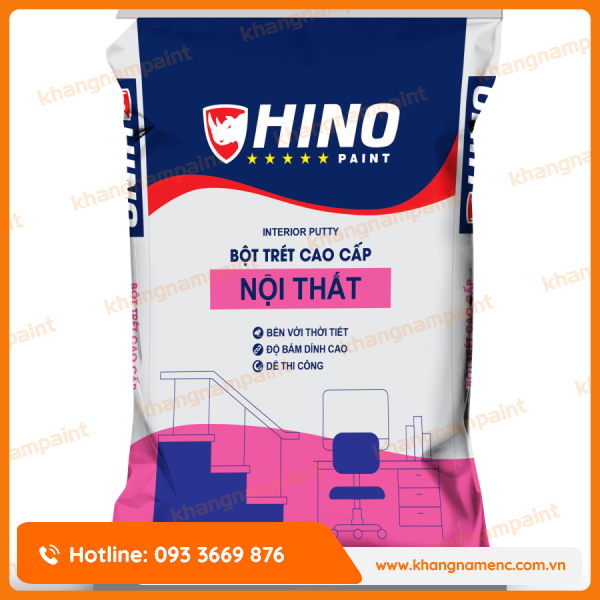 Bột trét tường nội thất cao cấp HINO là loại bột vữa lót mịn, được đặc chế để sử dụng làm phẳng, mịn bề mặt trước khi sơn, giúp hoàn thiện phẳng đẹp.